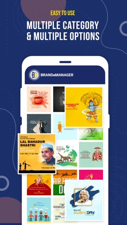Brand eManager App is an Indian festival poster maker, banner maker, online poster maker, flyer maker, Instagram post maker, digital banner maker, Post Maker, templates maker, free poster maker, canvas poster maker, online poster maker, online flyer maker, online template maker, Facebook post maker, online poster maker, my wall poster maker, brochure maker advert app.