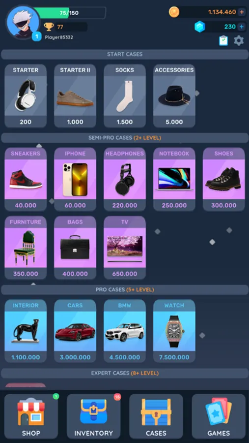 TapCase is the best case simulator with items ever- Lots of goods, upgrades and more! The game allows you to open cases with items like smartphones, laptops or even cars. Try your luck in our case simulator and build the most expensive and best collection