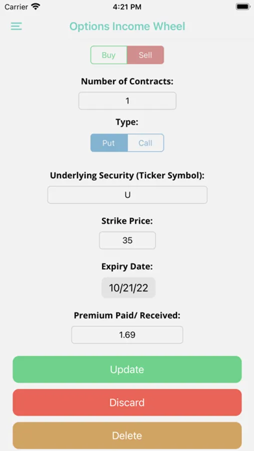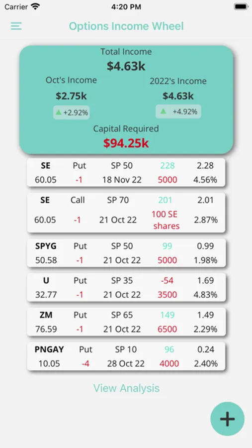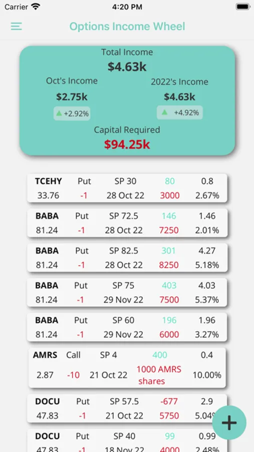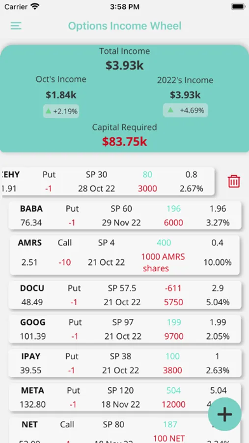 The options income wheel app allows you to keep track of your options contracts to manage your risk and monitor your return on investment for the month, year, and all time.