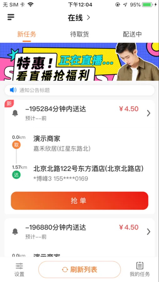 外卖惠骑手配送端,配套为外卖惠提供配送服务。
