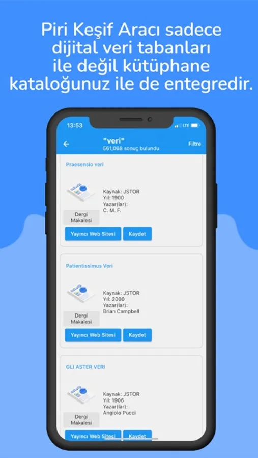 Piri, arama odaklı kurumsal olarak özelleşmiş bir keşif aracıdır. Piri, akademisyenler, araştırmacılar ve öğrenciler için araştırılan konu hakkında birçok veri tabanını tarayarak sonuçları analiz eder ve listeler. Yapay zekâ destekli modern arama algoritmaları ile ilgili içerikleri bulmayı amaçlar. Kurumunuzun abone olduğu veri tabanları ile birlikte geniş açık erişim içeriği sayesinde kullanıcılarınız tüm ihtiyaçlarını karşılar ve kullanıcı dostu ekranları ile araştırmaya teşvik eder.