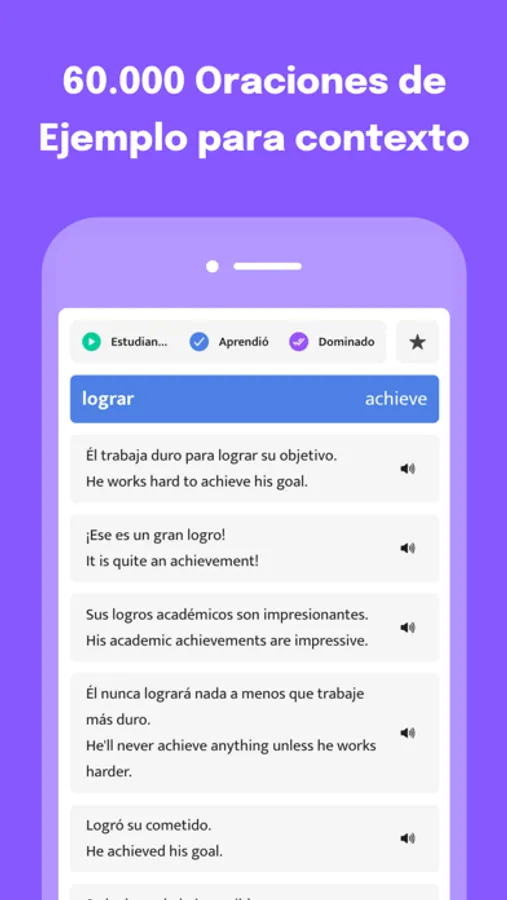 60000 oraciones de ejemplo para poner palabras en contexto, con pronunciaciones