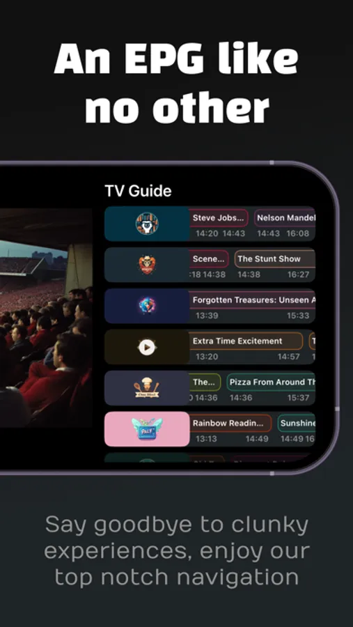 While other apps replicate the traditional TV EPG without leveraging touchscreen capabilities, we've reinvented the EPG experience from the ground up, optimising for touch interaction.