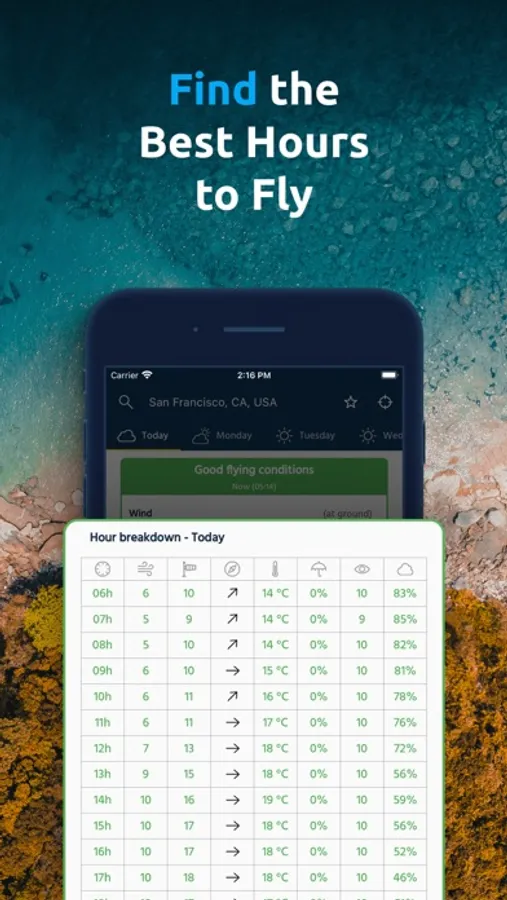 Wind and gusts speeds ► Keep your drone safe by checking the wind and gust speeds before you fly at different altitudes.