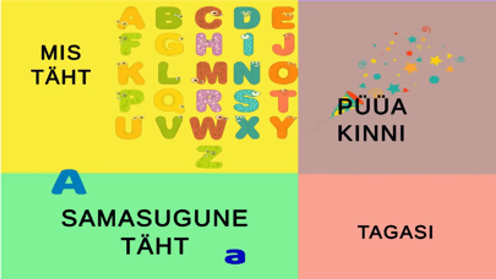 The games in the ToddlerGames app are divided into four themes: vowels, pronunciation, reading and writing. By playing different games, the child can learn vowels, practice pronunciation, reading and writing in Estonian.