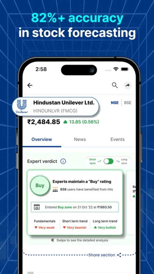 * To validate our investment ideas, we provide comprehensive stock insights, which include user-friendly analysis and tools for every entry or exit suggestion.