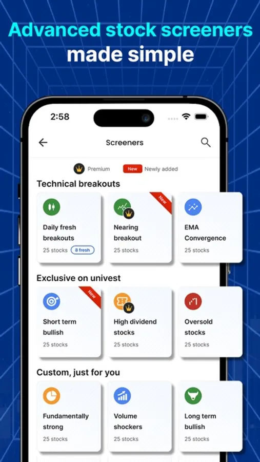 * Maximize your investments with the useful trading ideas by SEBI-registered advisors, advanced screeners, stock insights, and more offered by Univest.