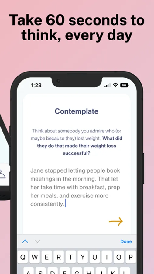 Stay connected with your values and on track with your weight goals. It only takes 60 seconds to Contemplate, then get on with your day.