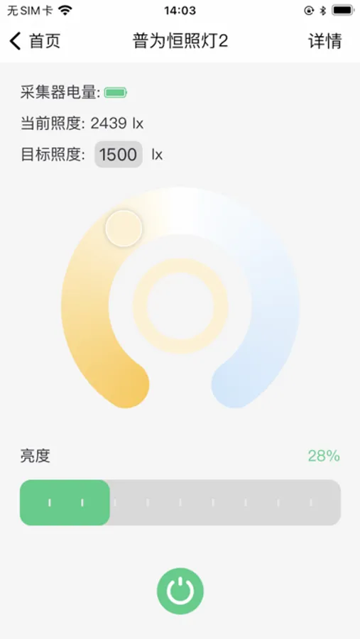 PVTECH恒照度APP主要功能,连接智能灯具,设定恒定照度,自动调节灯具照度。也可手动调节灯具色温,亮度等。舒适照明,节能减排。