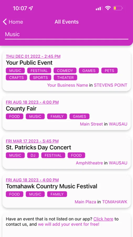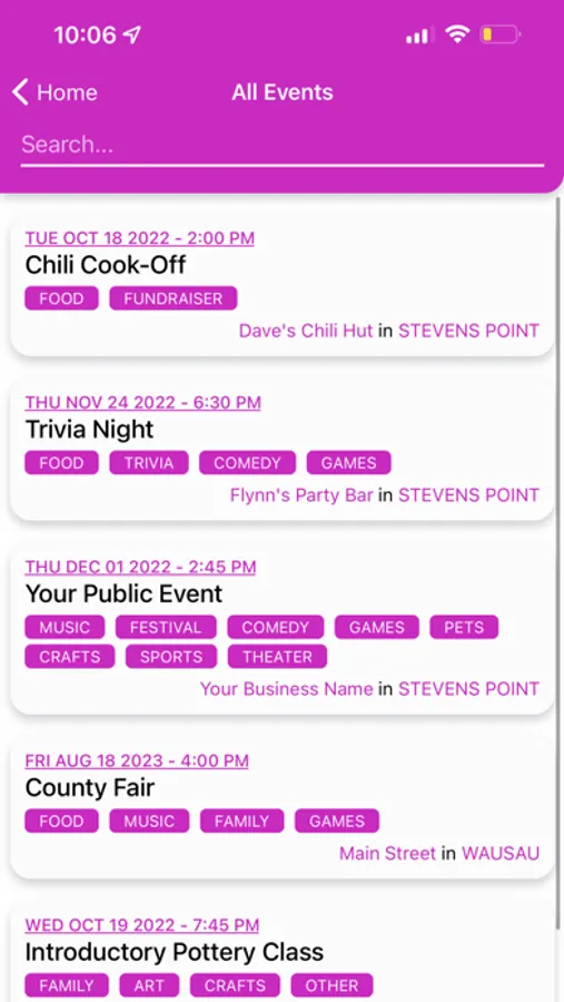 Find and view events from all over Central Wisconsin! Search for specific events, event types, businesses, or locations! Do you have a public event you want posted on our app? Email us at staff@offtheclockcw.com, and we will list it for FREE!