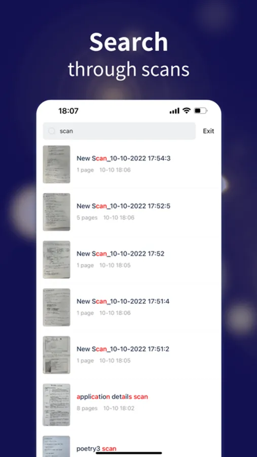 •Documents and scans can be shared and exported via WhatsApp, iMessage, Microsoft Teams, email