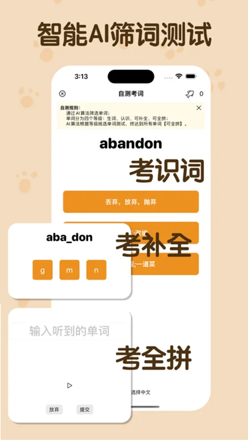 磨耳拥有单词测试功能,考一考你是不是真的都记住了那些单词。
