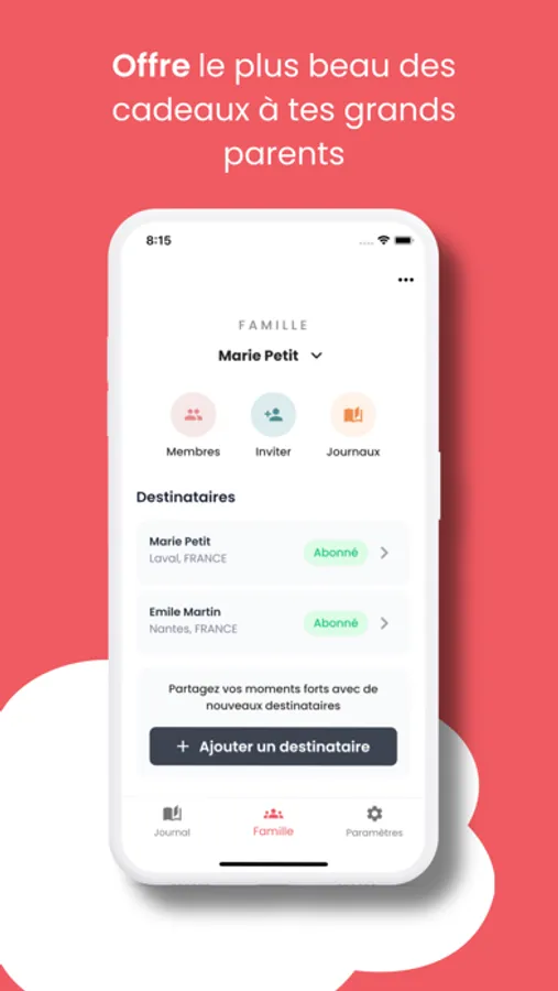 - Contributeurs illimités : Enrichissez vos récits en incluant un nombre illimité de contributeurs. Invitez toute la famille pour une expérience de partage collective inoubliable.