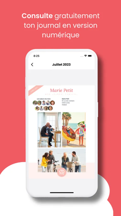 Chaque mois, laissez votre créativité s'épanouir en ajoutant jusqu'à 30 photos et quelques anecdotes pour façonner un journal photo qui capture l'essence de vos instants les plus mémorables. Notre équipe prend ensuite le relais pour la mise en page et l'impression de vos plus beaux clichés avec un format adapté à chaque photo.