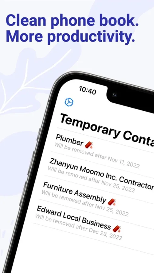 This app gives you an ability to set up contacts from your phone book for automatic removal after specific time.