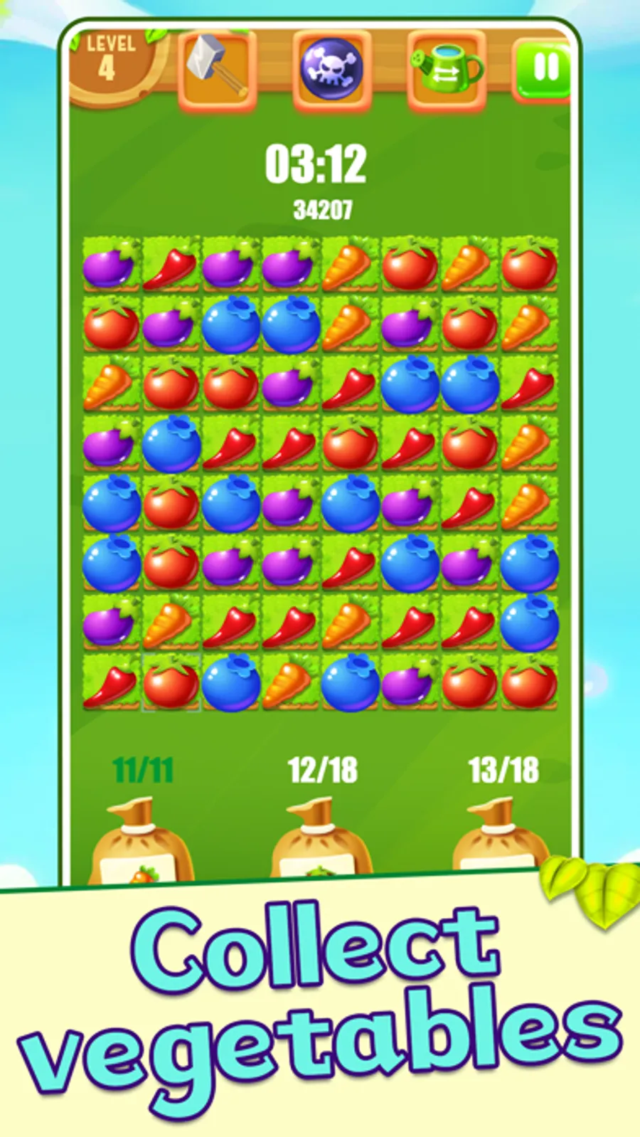 Help the farmer to connect all three fruits of the same fruit together to harvest
