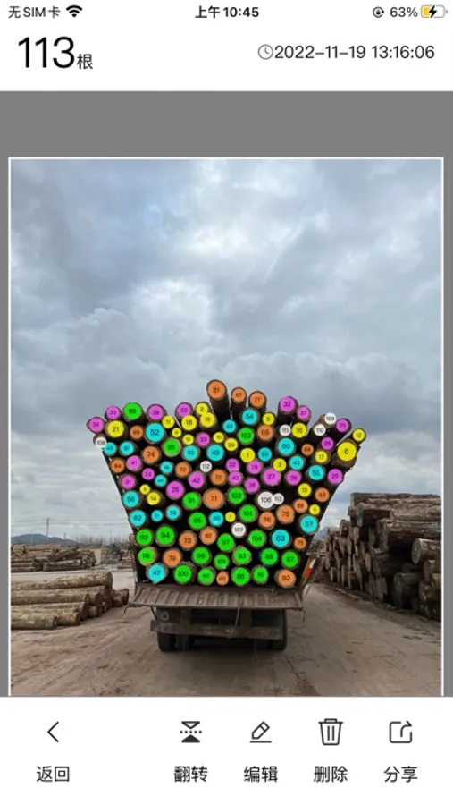 小堆原木或集装箱卸车,使用拍照计数,实时出结果对码单。如果有遮挡或者断木,可使用编辑模式,手动加减,真正实现零误差!