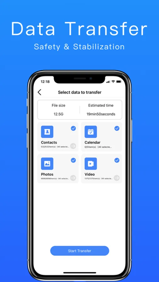 Contacts, Photos, Videos, Calendars and other materials support all selection, batch data transmission.