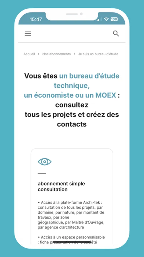 Les professionels publient leurs projets selon les critères qu'ils déterminent et peuvent ainsi augmenter la visibilité de leurs projets, développer leur notoriété et créer de nouveaux contacts clients.