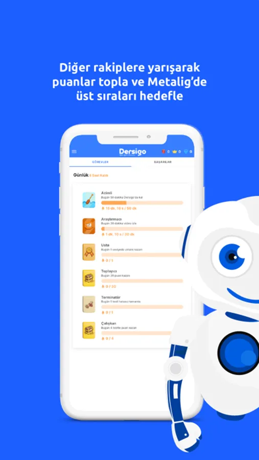 Senin için hazırlamış olduğumuz uygulamamızı indirerek istediğin zaman, istediğin yerden Dersigo’ya rahatlıkla ulaşabilir, MetaLig’de mücadelene devam edebilirsin.
