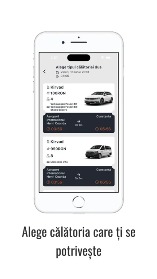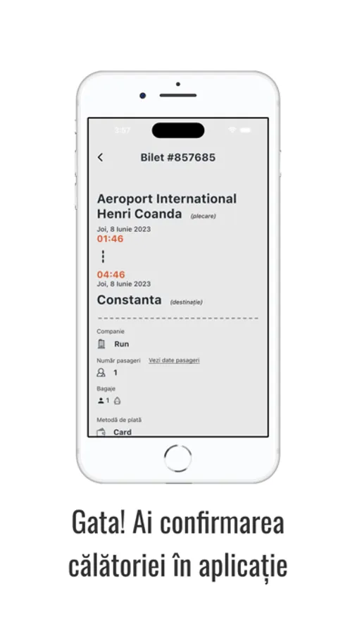 - Plateste si primesti confirmarea calatoriei in aplicatie si pe email