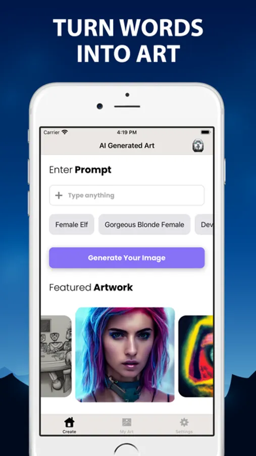 Generate AI Images using the AI Generated Art app. Ever wonder what it would be like to use an AI Art Generator to turn text into amazing art that you can use for NFT? Wonder no more, because this app uses artificial intelligence or AI to generate incredible art.