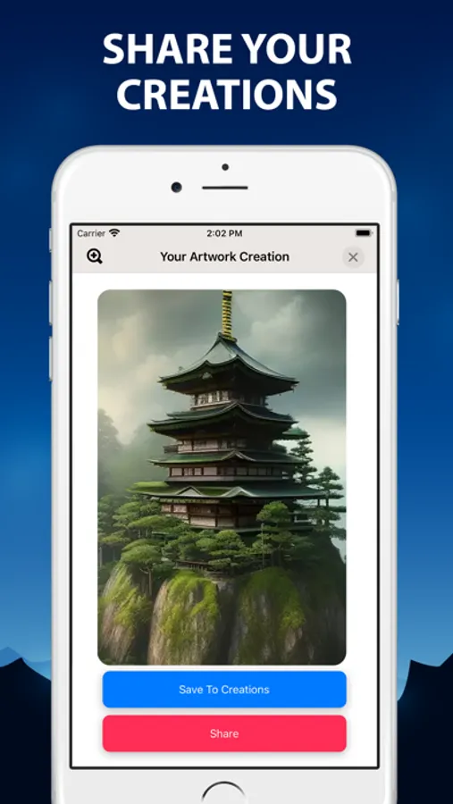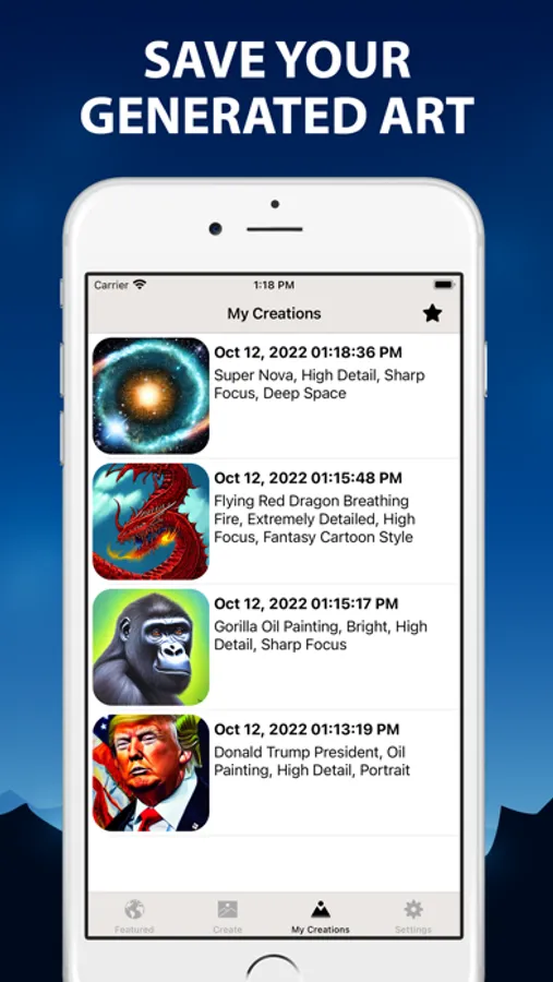 That's it! In a few seconds to a couple minutes your AI Generated artwork will show up for you to save and share with friends!