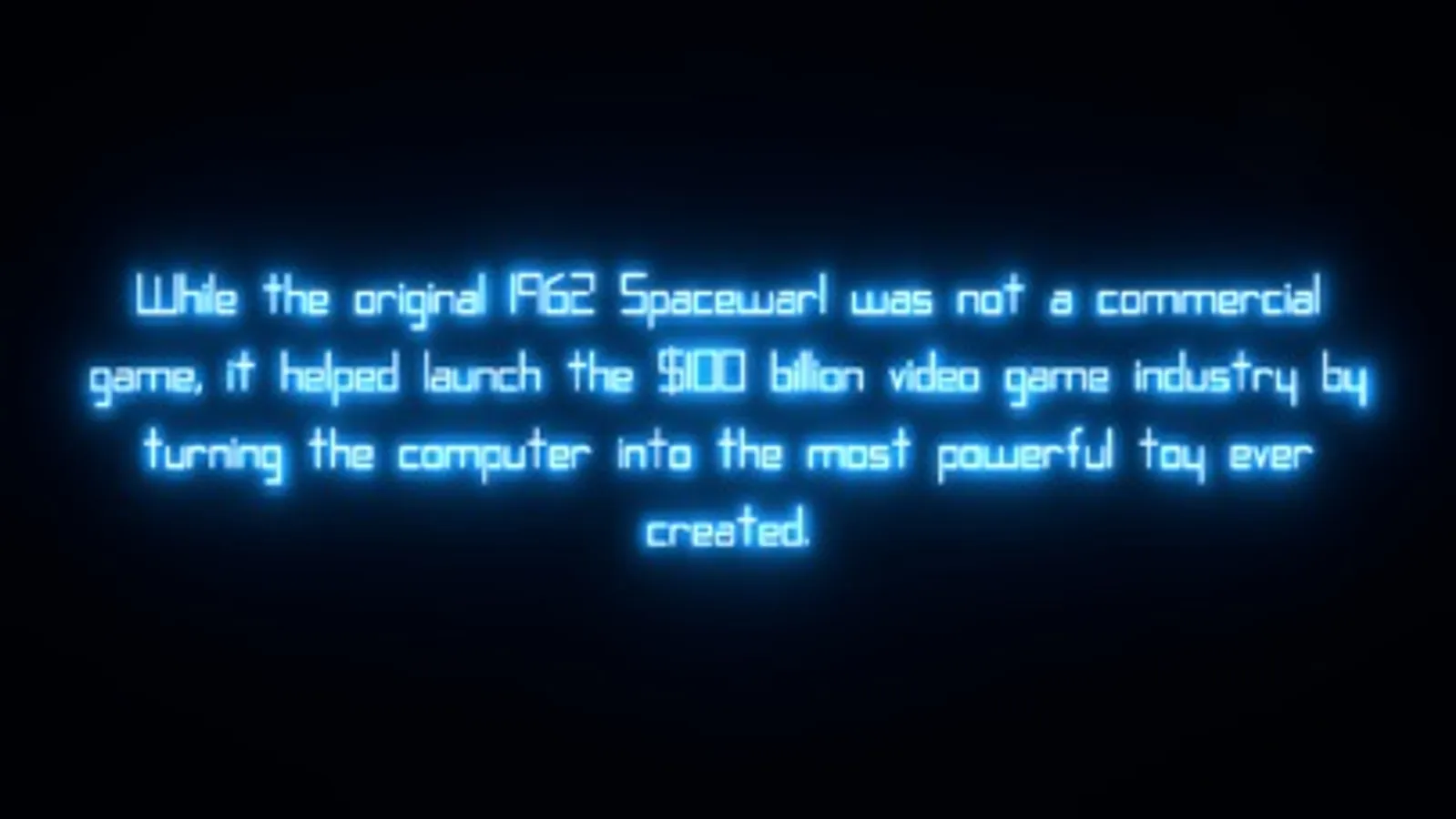 While the original 1962 Spacewar! was not a commercial game, it helped launch the $100 billion video game industry by turning the computer into the most powerful toy ever created.