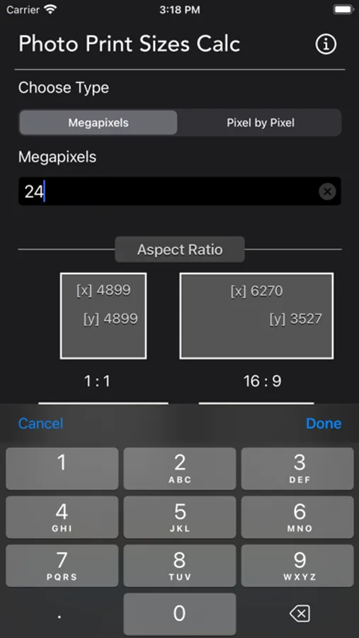 By inputting the width and height of the photo, the app displays the print aspect ratio for your better understanding on final print output.