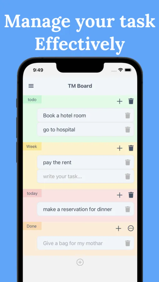 Task Management Board will help you to manage your tasks or todos more effectively with your smartphone.