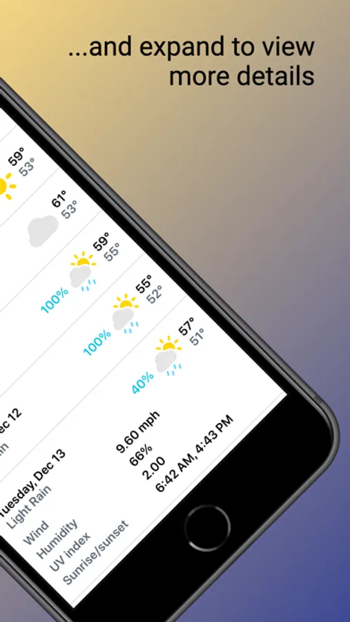 Tired of complicated weather apps that just confuse you? Tired of having the most important information being buried under complicated and irrelevant data? GooWeather solves this issue by presenting to you the most critical weather data in an easy to use format. On top of being easy to use, it is also easy to understand.
