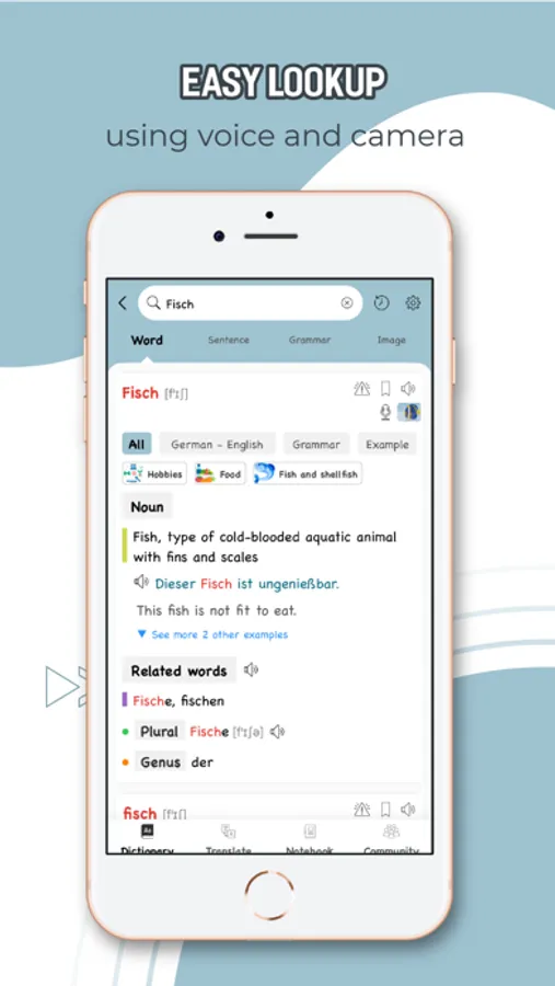 - Use images and voice to directly look up German vocabulary, grammar, and sentence structures.