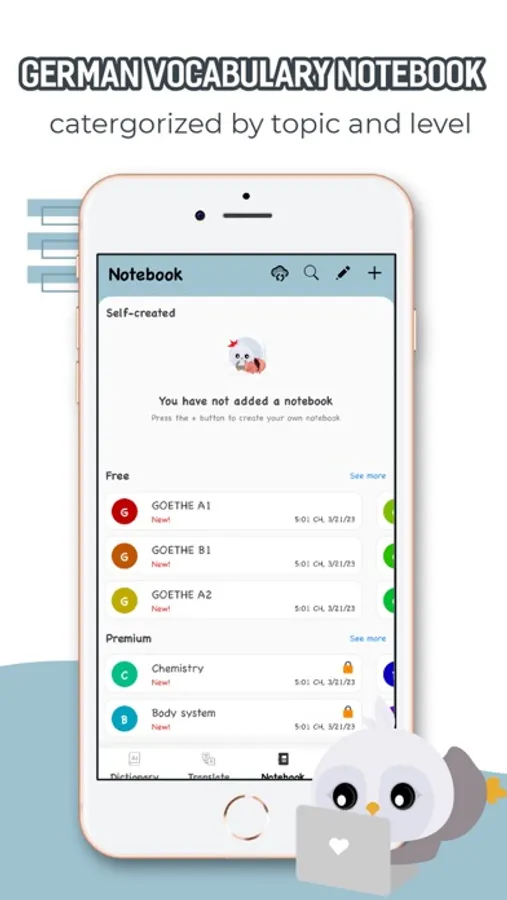 Store and memorize German vocabulary with the vocabulary notebook feature: