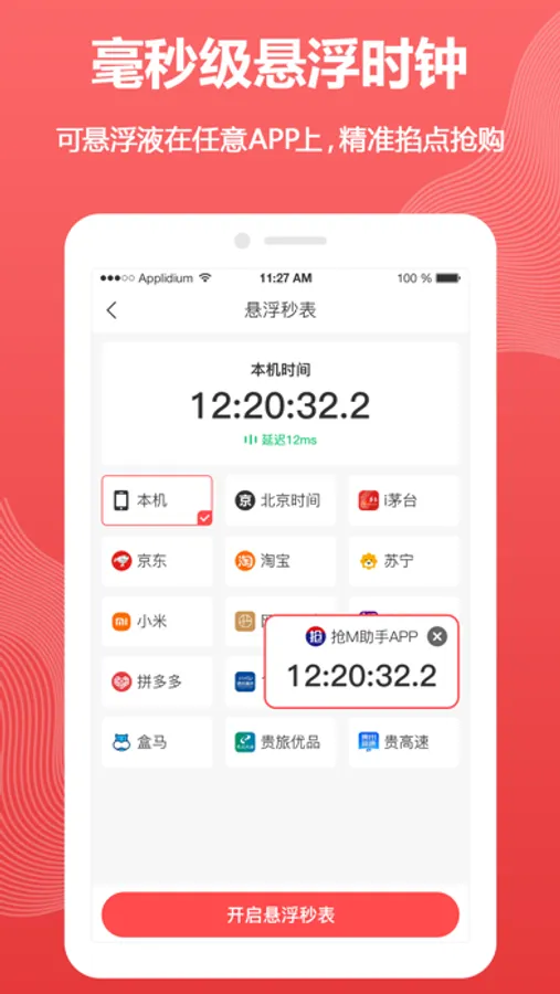 毫秒级精准倒计时悬浮时钟,可悬浮在任意APP上,助力卡点抢购!