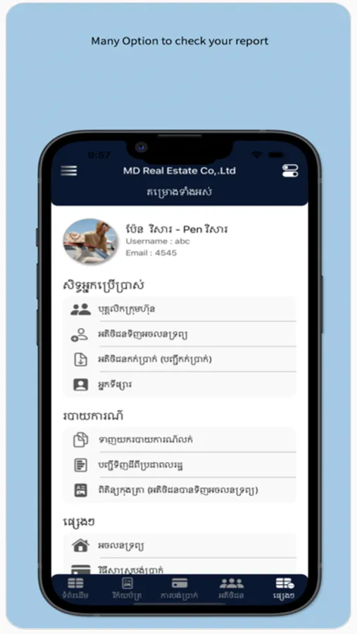 User can check invoice, report, property, map....