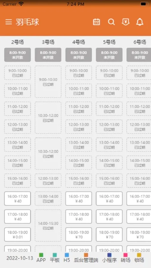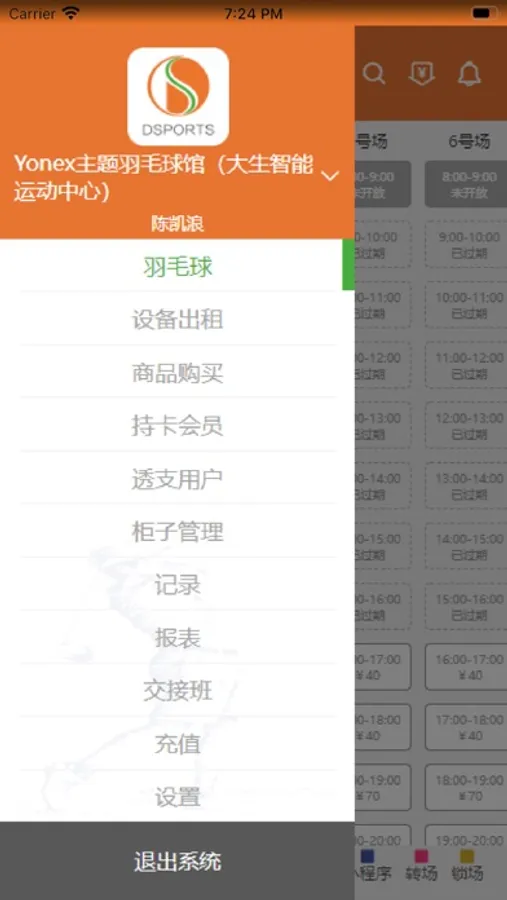 大生体育iOS App集合了场地管理、储物柜管理、设备出租、交接班、订单记录等功能,用于管理羽毛球场馆。 通过该app,管理员能够查看场地预定情况,快速订场,接收用户服务请求并提供服务,出租设备,打开储物柜等。