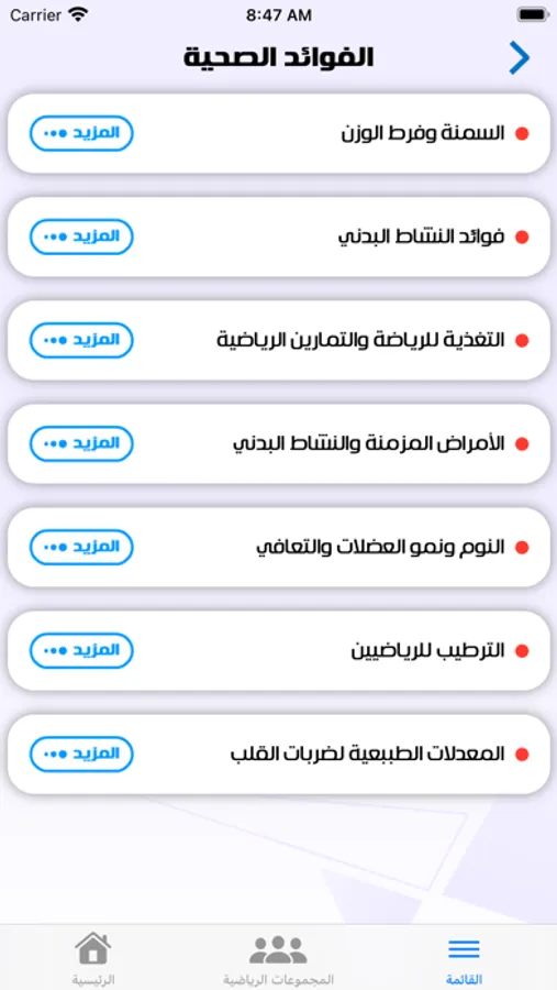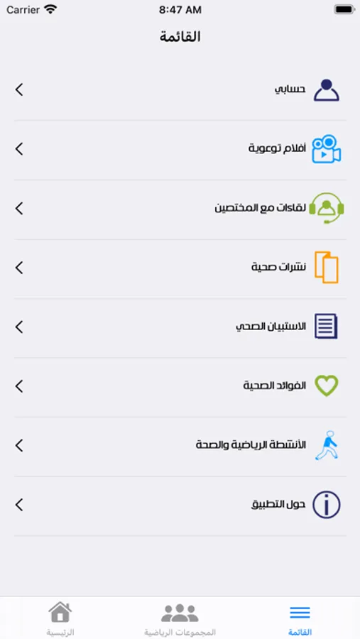 ويقوم التطبيق ايضا بعرض مقاييس الحركة المهمة و ضربات القلب وعرض التوصيات الصحية المناسبة لذلك . و بمرور الوقت، أثناء المشي و iPhone في جيبك أو وضعه بالقرب من خصرك، يتم رسال البيانات من Health app الى تطبيق كويت رياضة باستمرار. ويمكن للمستخدم الوصول الى تلك البيانات من خلال تطبيق كويت رياضة في حسابي ثم مؤشراتي الصحية او من الشاشة الرئيسية