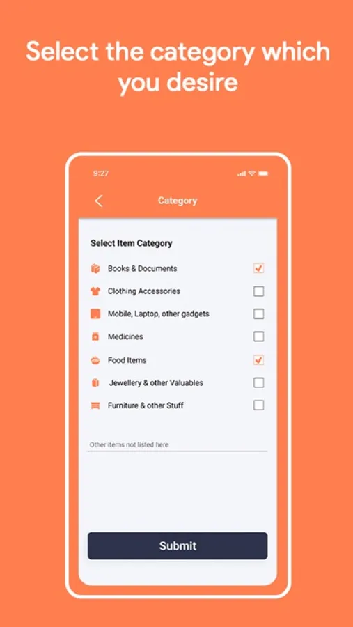 1. Open the app and select your package size.