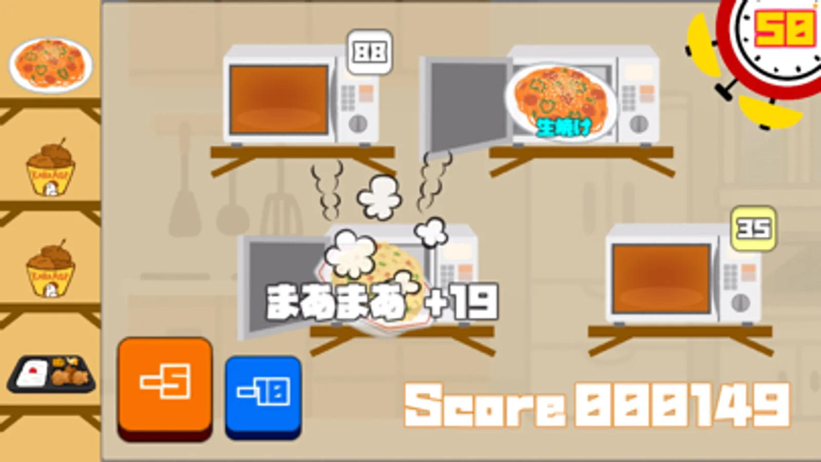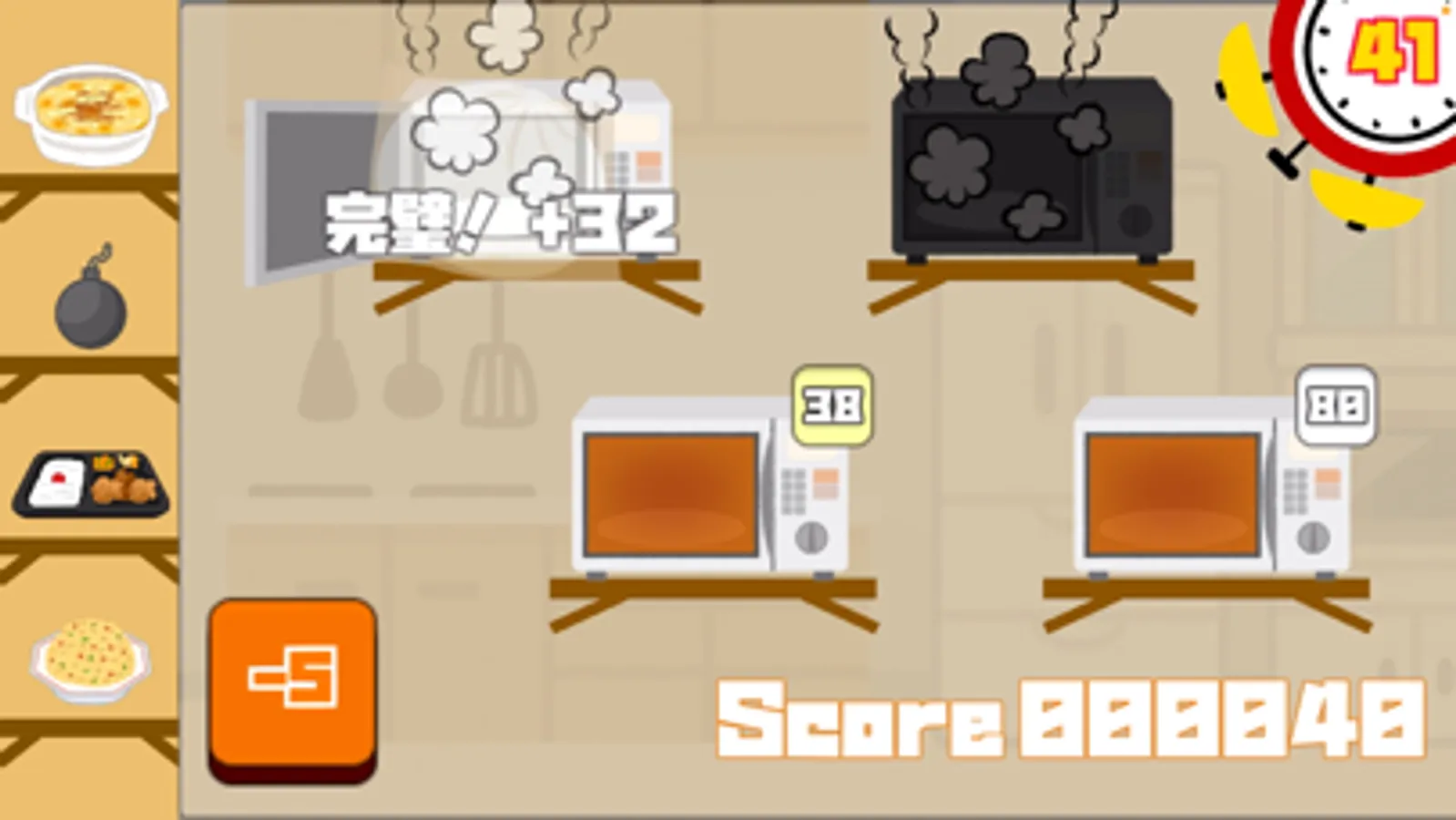 このゲームはレンジから丁度いい温め加減で食べ物を取り出し