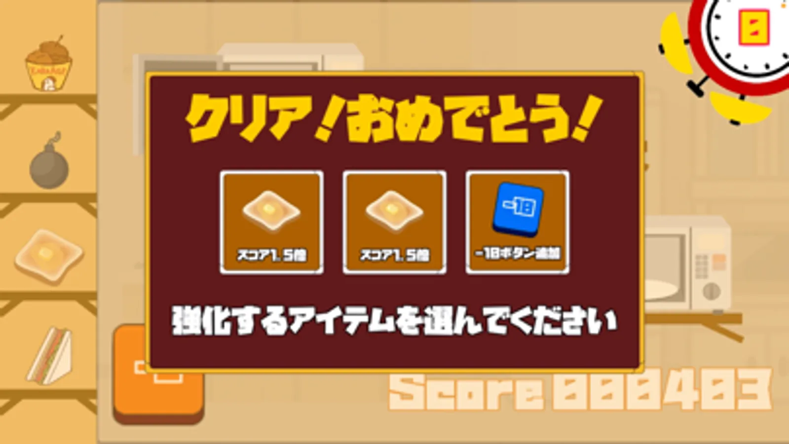 0秒 :右上の制限時間を一定時間とめる + 高得点
