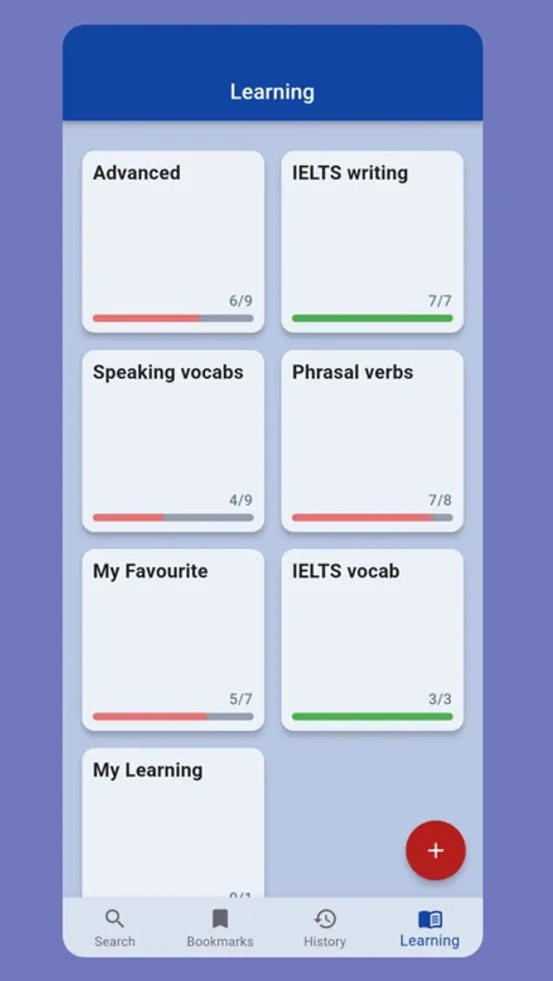 - Flash Card Learning to help you memorize new words.
