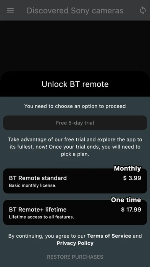 It comes with a free trial. BT remote is offered as software as a service (SaaS). You will need to purchase a subscription or a lifetime license from within the app.
