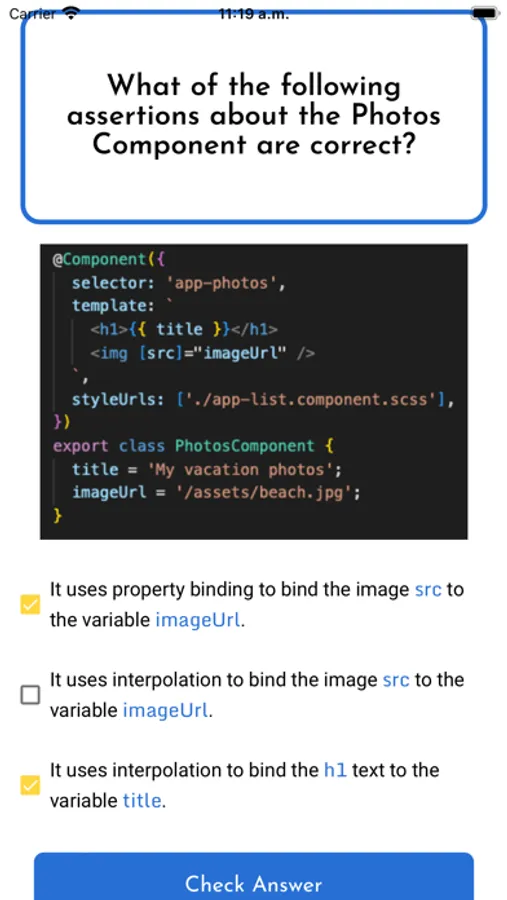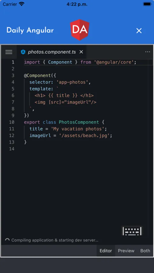 Learn to create Angular apps! Daily Angular is the fun, free app for learning Angular through quick, bite-sized lessons.