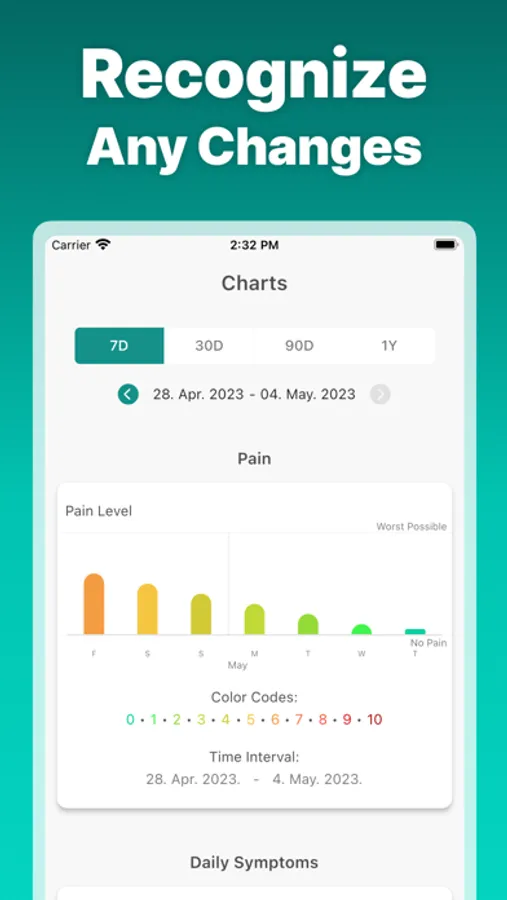 Track your symptoms and your treatments, take notes and visualize everything by a few simple taps.