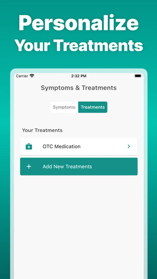 - Personalize your tracker by editing or creating custom symptoms and treatments