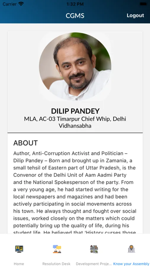 It is grievance management and tracking application for Timarpur assembly, Delhi, This is facilitated by Dilip Pandey, MLA, AC-03 Timarpur Chief Whip, Delhi Vidhansabha.