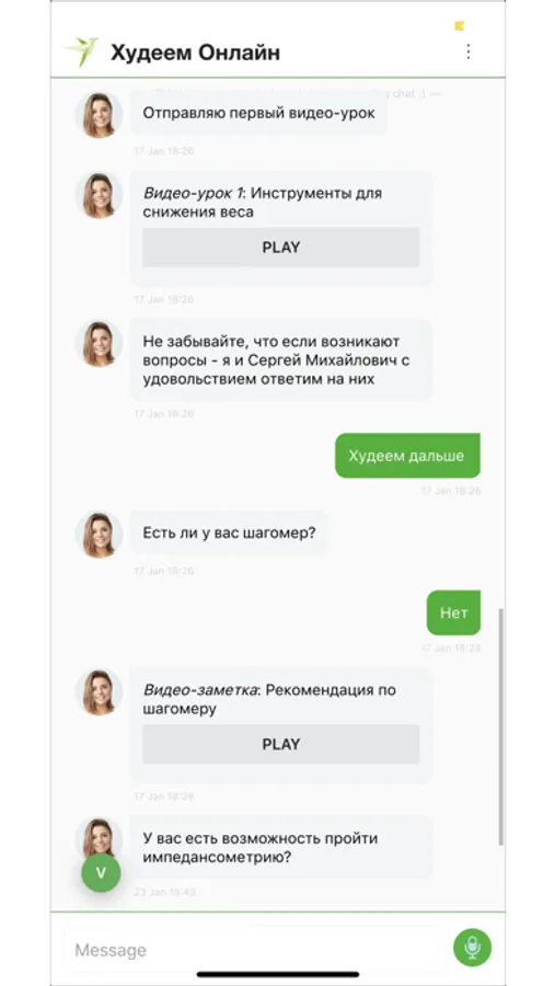 Понятный и привычный способ общения — вносите данные, заказывайте индивидуальные консультации или задавайте вопросы нашим специалистам по похудению прямо в чате.