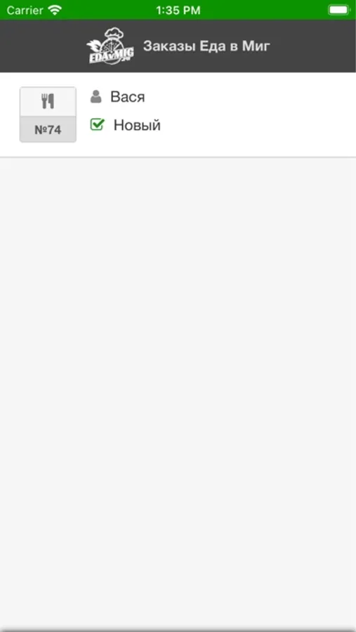 Каждый размещенный заказ передается непосредственно в это приложение. Ваше устройство звонит, уведомляя вас о поступлении нового заказа.
