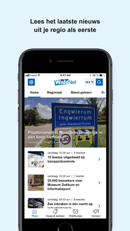 Blijf altijd op de hoogte van het laatste nieuws uit Friesland. De app is gratis en sindskort in bedrijf.
