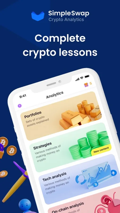 Download SimpleSwap, the ultimate crypto analytics app, and embark on a journey of crypto learning and trading. Explore Ethereum, Bitcoin, and other cryptocurrencies. Learn, trade, and grow your knowledge within the dynamic crypto market.